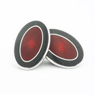 DOUBLE OVAL BLACK/RED ENAMEL sterling silver CUFFLINKS