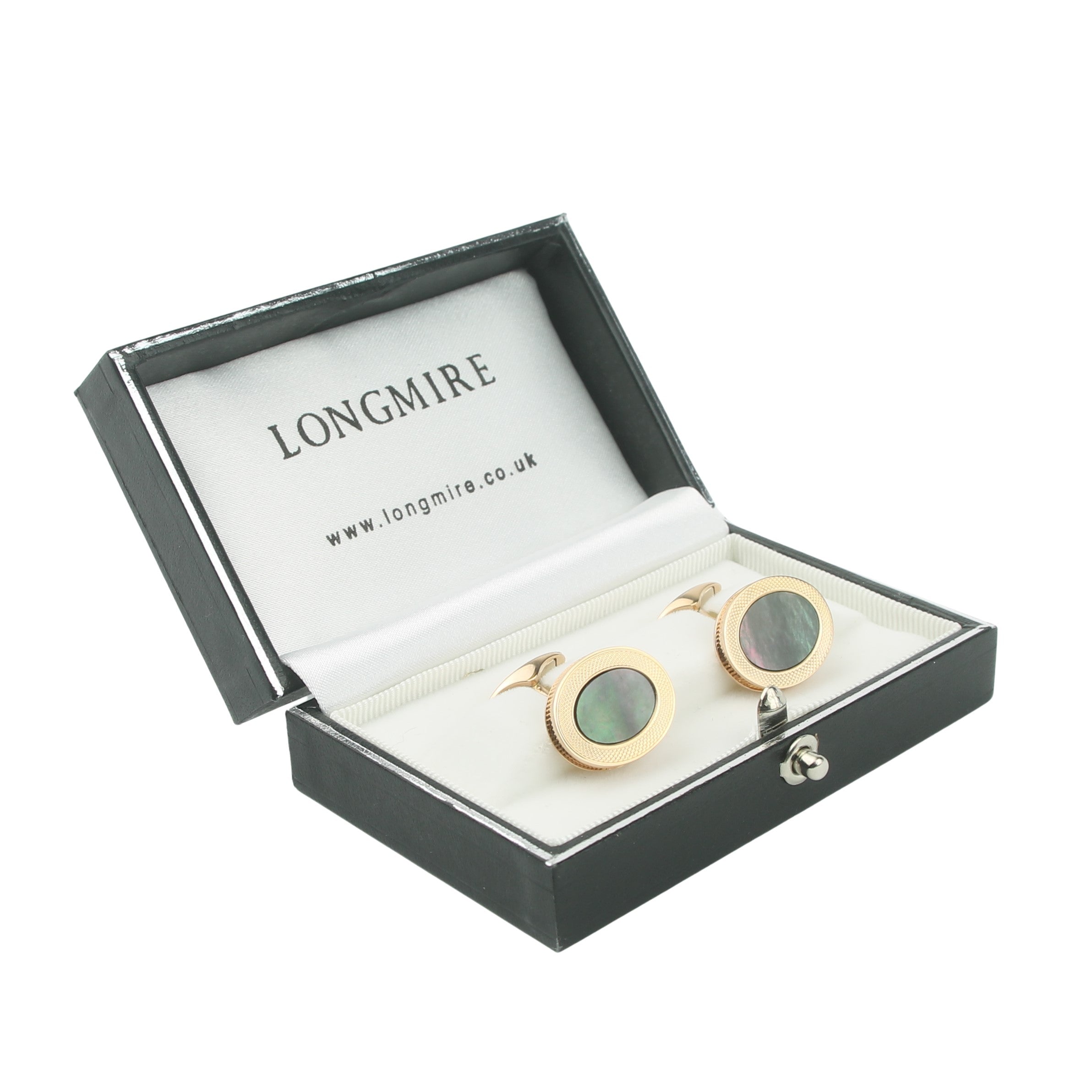 TAHITIAN MOTHER OF PEARL reeded edge oval 18ct ROSE GOLD CUFFLINKS
