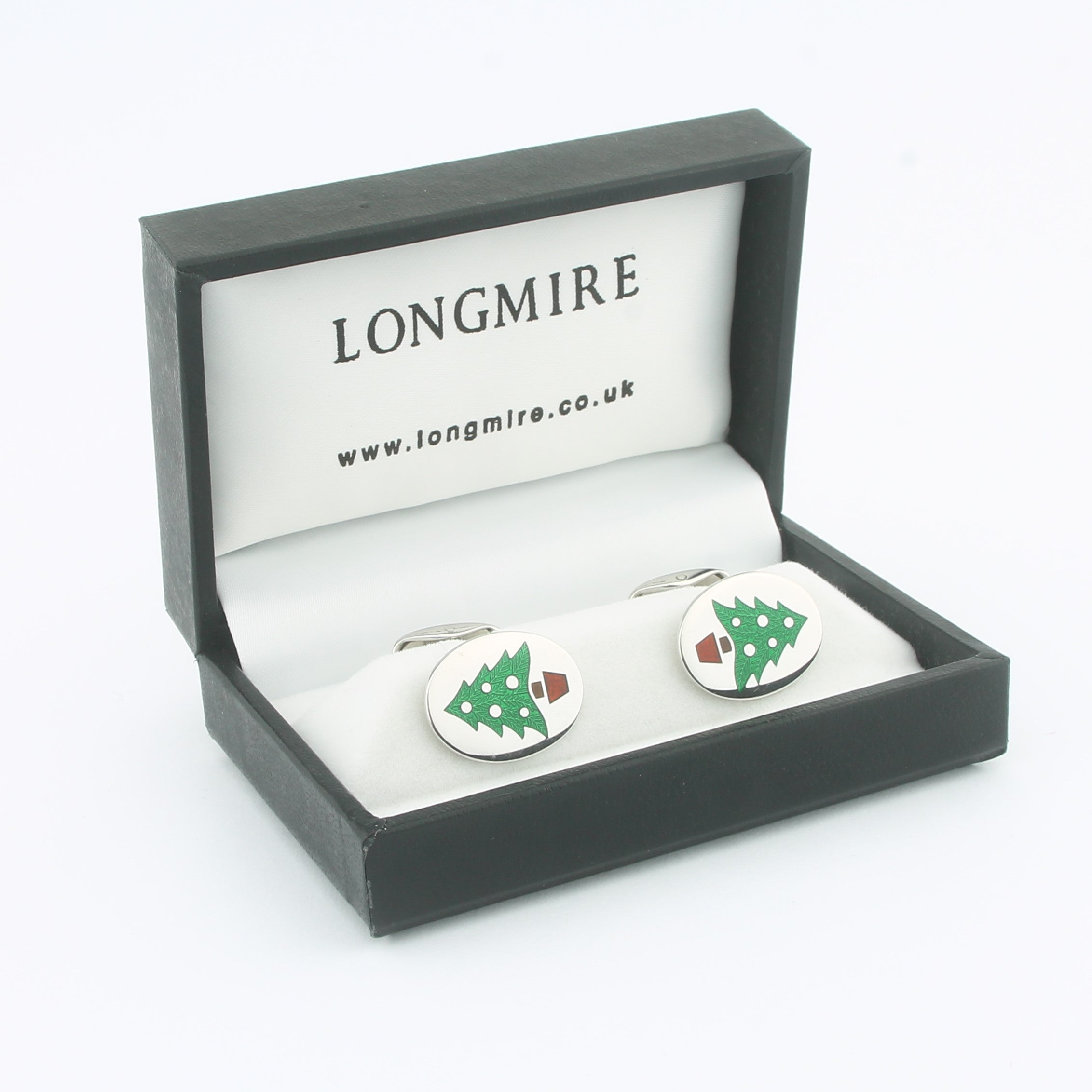 Celebrate the 'Most Wonderful Time of the Year' with our Christmas Tree cufflinks. Meticulously hand enamelled in green and red against a highly polished silver background, they look brilliant on any cuff!