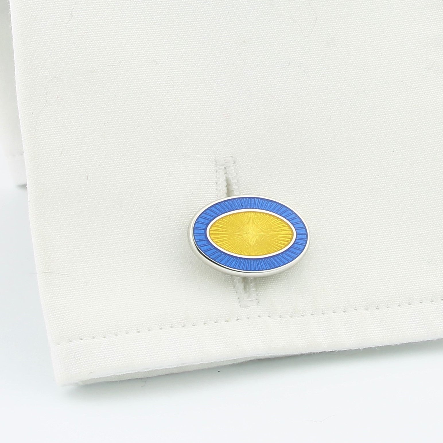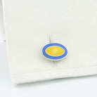 - Light blue and yellow hand enamelled double oval cufflinks