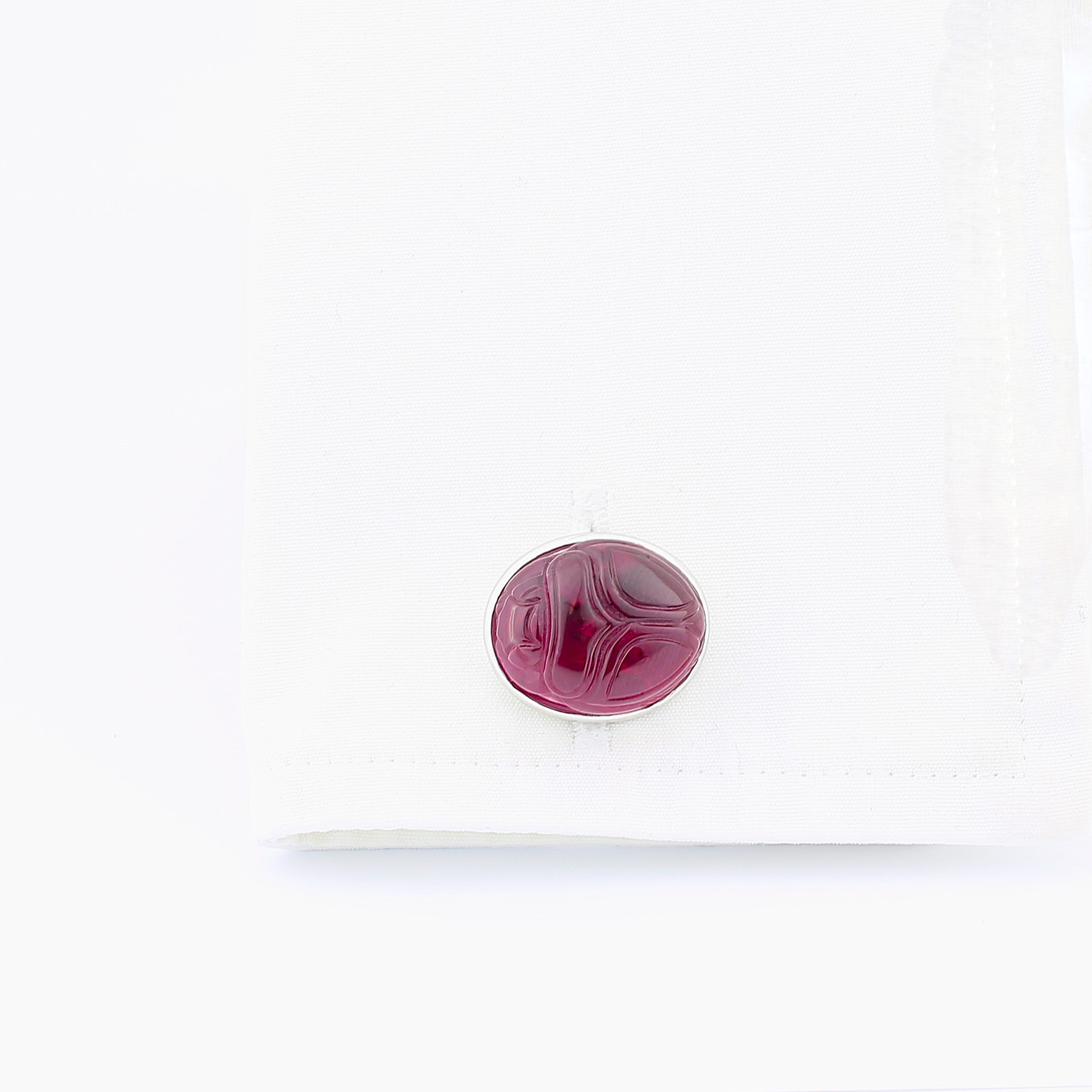 Vivid and intensely expressive, these scarab cufflinks are carved from richly coloured rubellite, celebrated for its deep crimson to rose-red hues and exceptional vitality. A rare and prized variety of tourmaline, rubellite is valued for its saturated colour and luminous depth, bringing warmth and intensity to each sculpted form. Long associated with passion, strength, and emotional power, the scarab motif becomes a symbol of vitality and transformation. Bold yet exquisitely refined, these cufflinks are created for those who favour presence, individuality, and enduring significance.