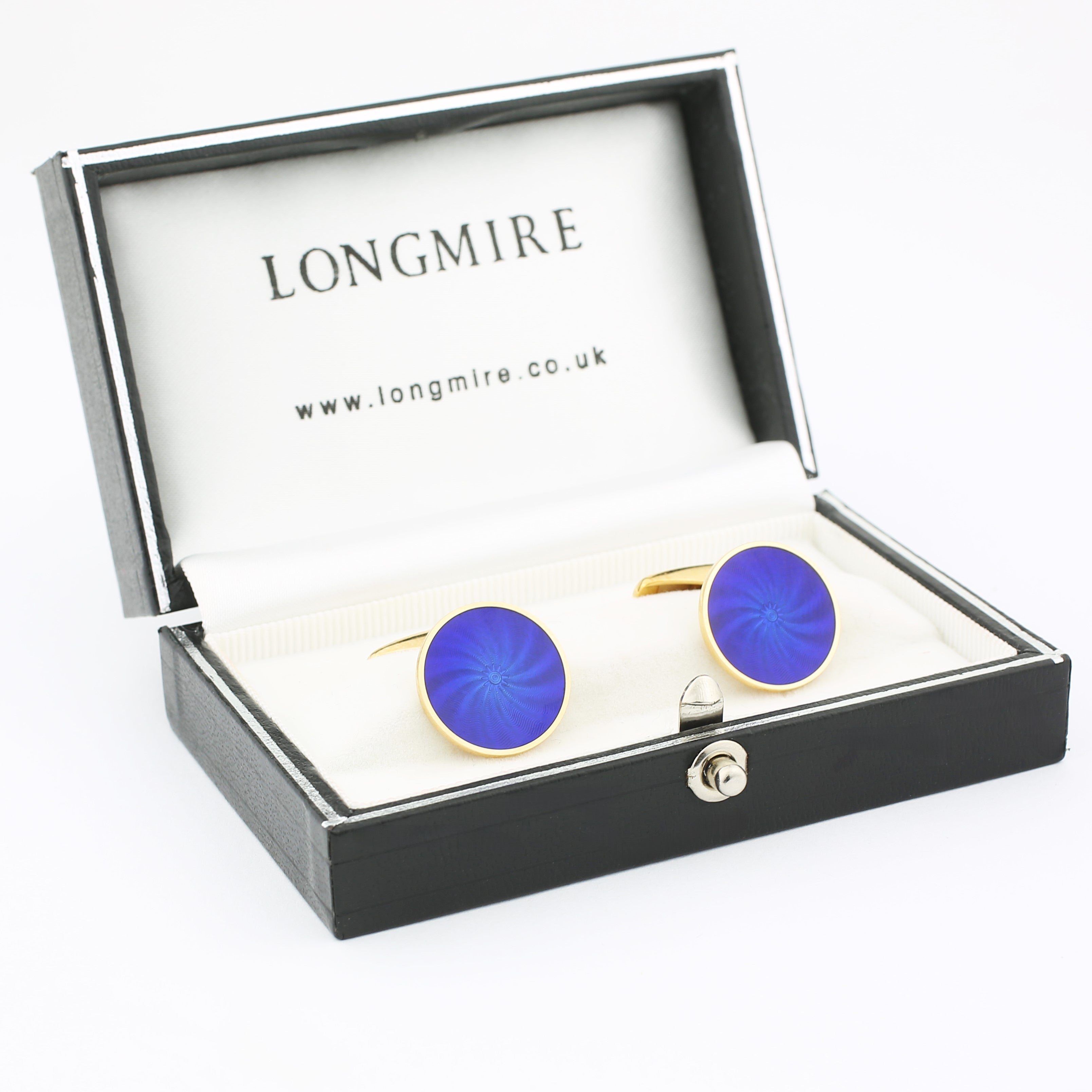 star swirl royal blue enamel 18ct yellow gold cufflinks