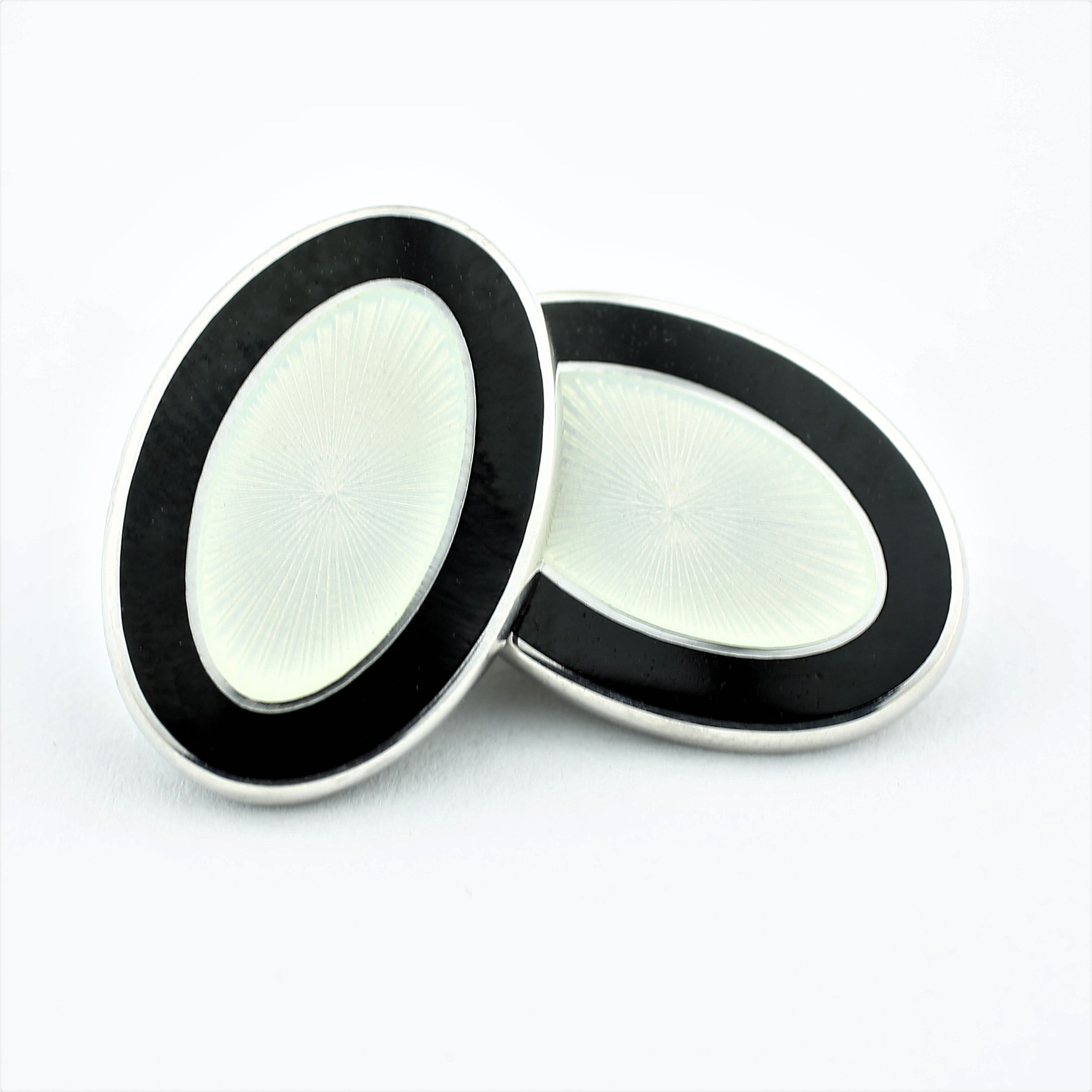 DOUBLE OVAL BLACK/WHITE enamel sterling silver dress set