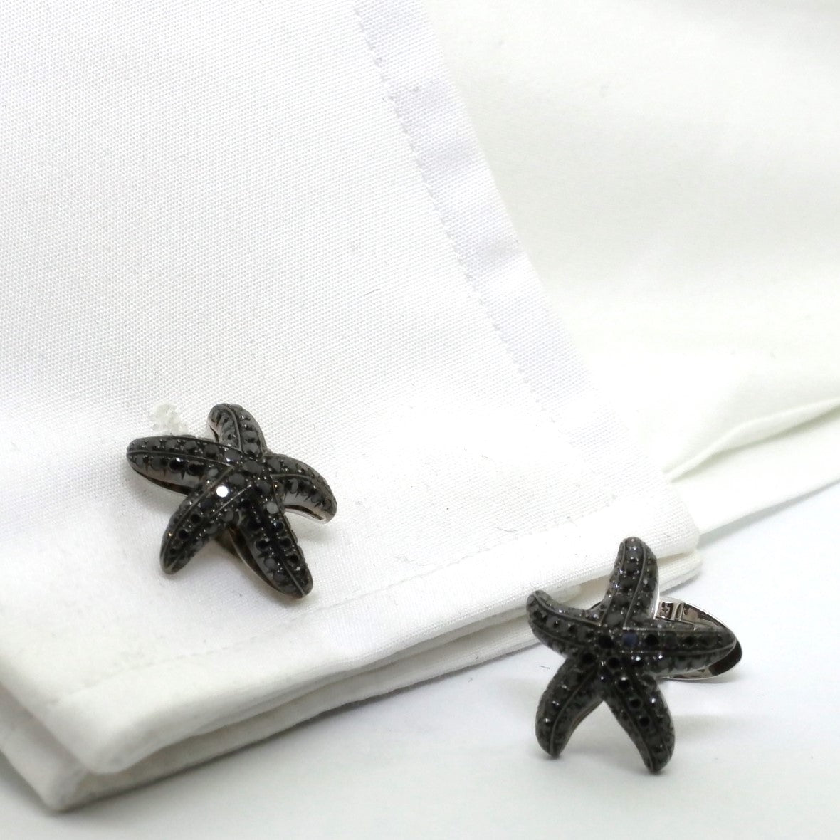 STARFISH BLACK DIAMOND 18ct WHITE GOLD CUFFLINKS
